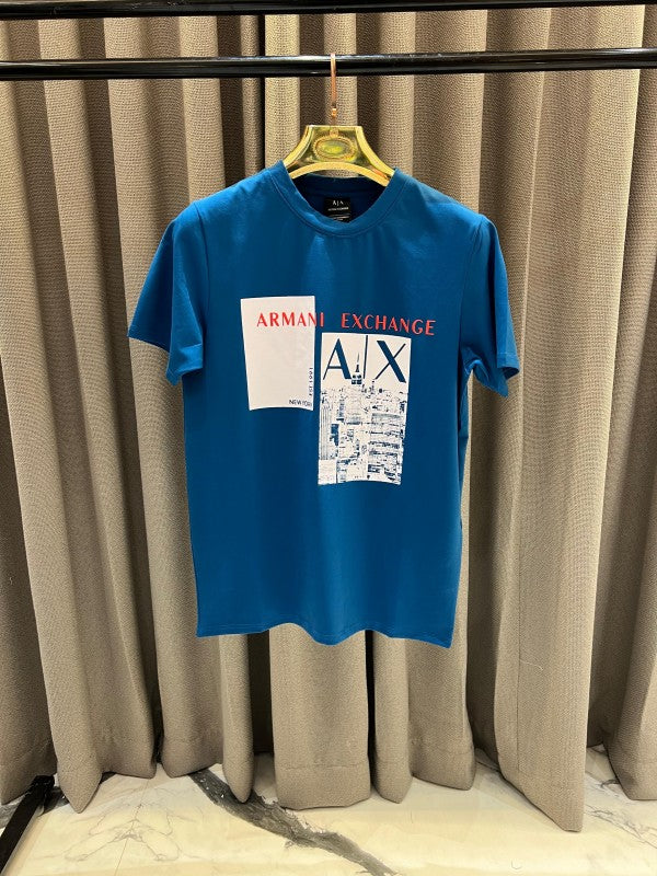 Armani Exchange Middle Brand Print Round Neck T-shirt Glass Blue