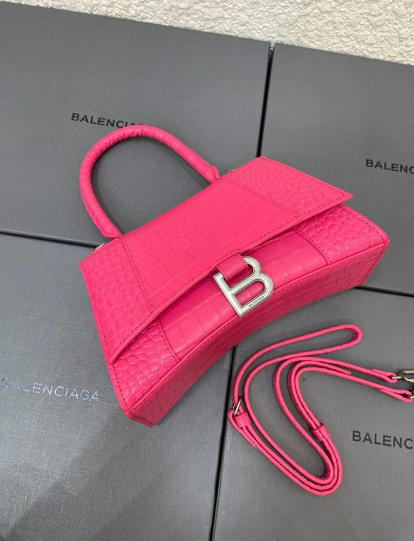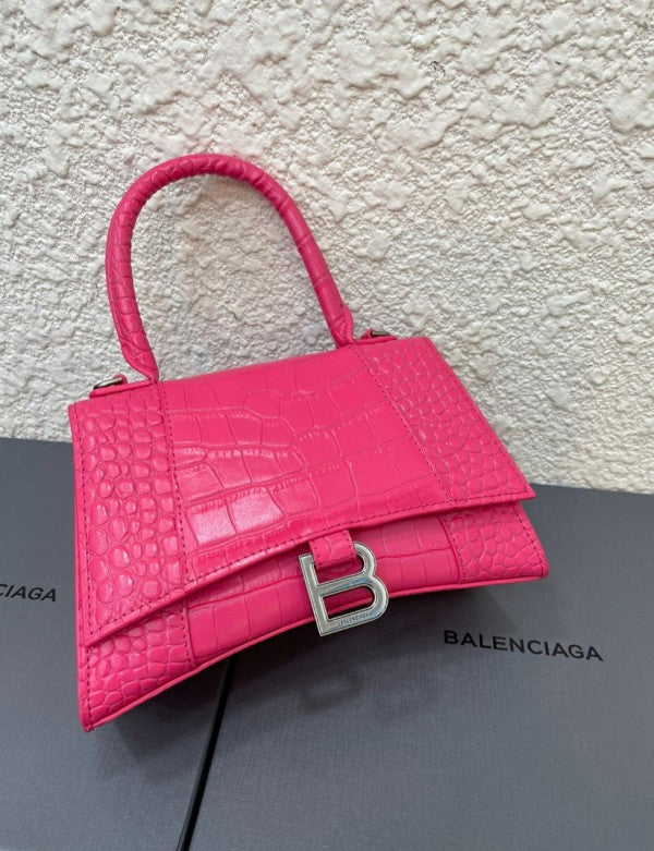 Balenciaga Hourglass Croc Skin With OG Box & Dust Bag (1930-1 FUCHSIA)