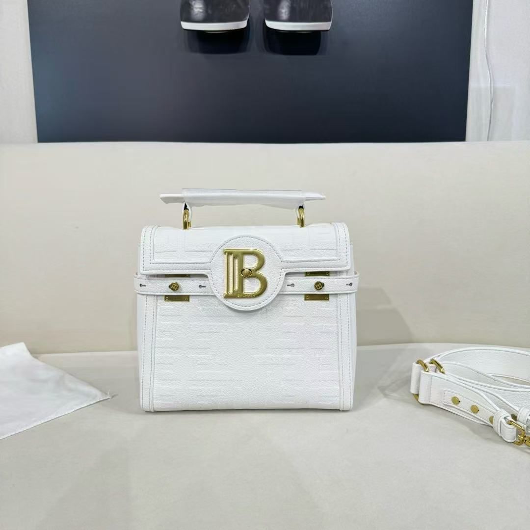 Balmain B-Buzz 23 Leather Tote Bag With OG Box & Dust Bag Litchi Grain White