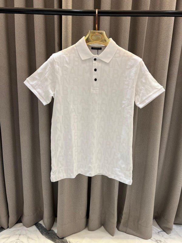 Balmain Full Monogram Print Polo T-shirt White