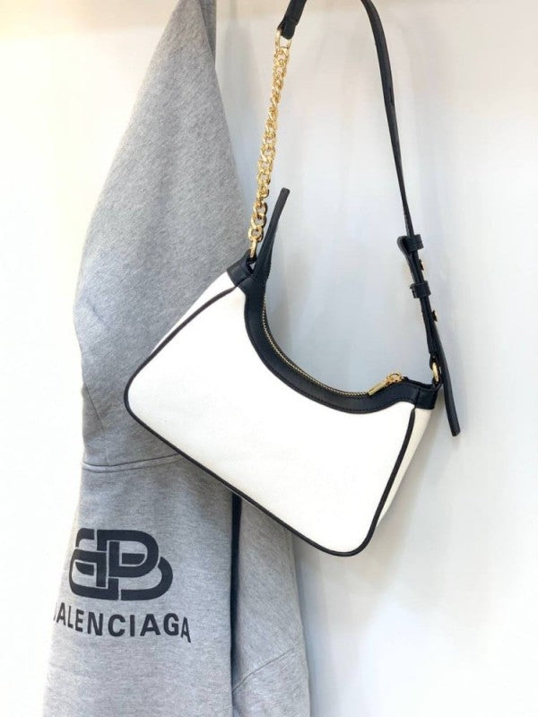 Balmain Paris B-Army Logo-Print Shoulder Bag With OG Box & Dust Bag BA329 Black White