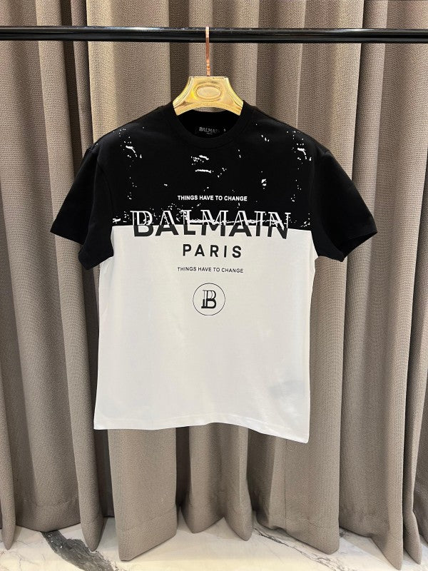 Balmain Paris B Logo Middle Brand Print Round Neck T-shirt White-Black