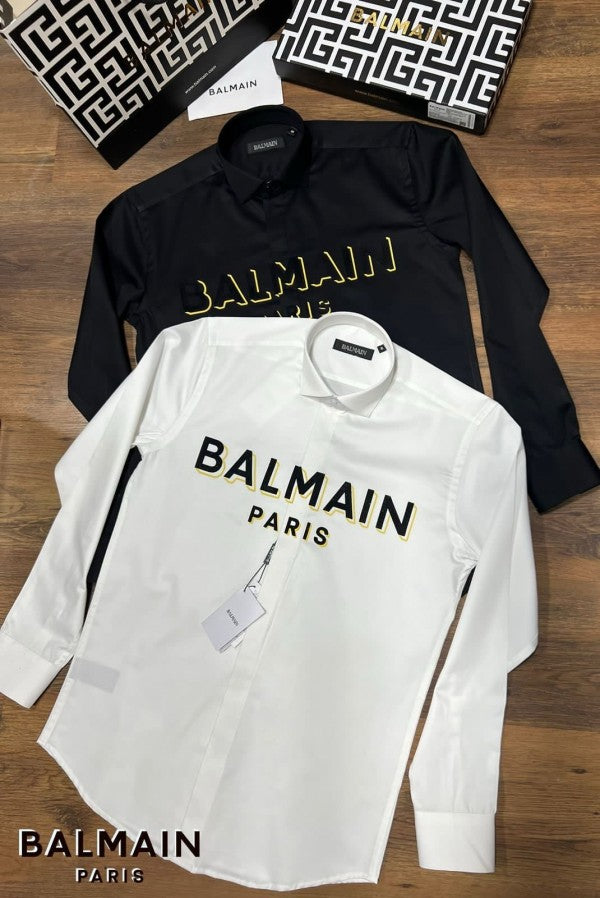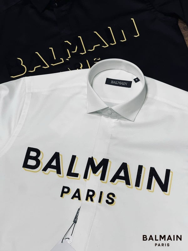 Balmain Paris White Embossed Print Shirt With Premium Box Packing And Carry Bag
