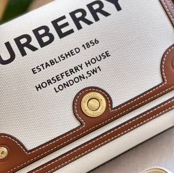 Burberry Horseferry Canvas Leather Shoulder Bag Beige Brown With OG Box & Dust Bag 1208 White Canvas