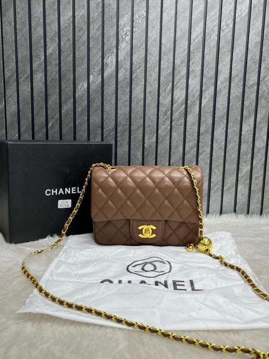 Chanel Brown Mini Flap Crossbody Bag With Original Box Dust Cover