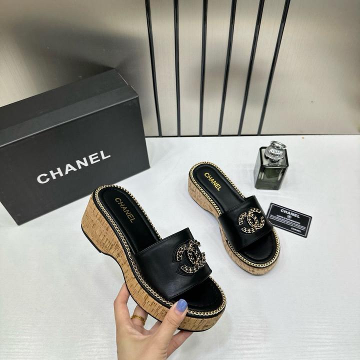 Chanel CC Platform Black Sandal Slide With OG Box & Carry Bag 22865 Black