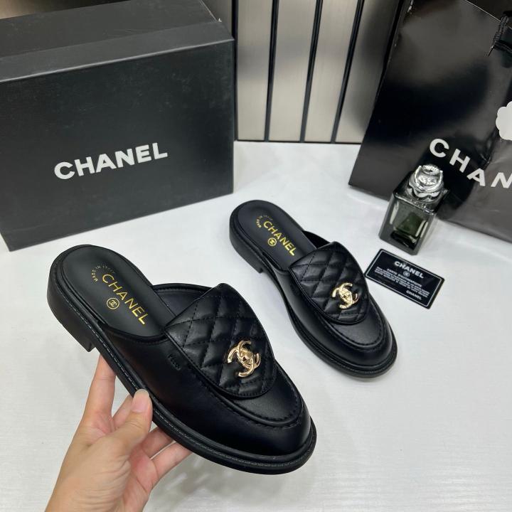 Chanel Lambskin Quilted CC Turnlock Mules Black With OG Box Carry Bag 21-4 Black
