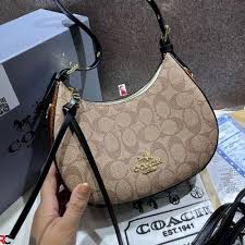 Coach Carmen Mini Crossbody In Signature Jacquard Dark Apricot With Orange OG Box & Dust Bag (2750)