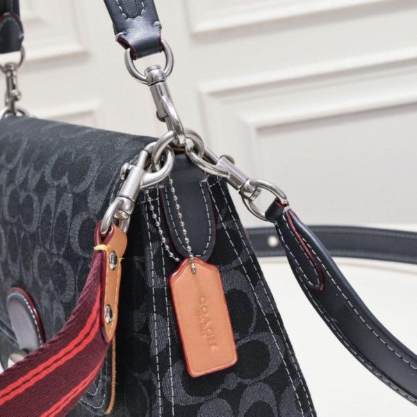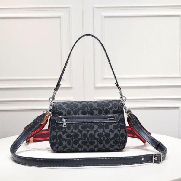 Coach Soft Tabby Shoulder Bag In Signature Denim With OG Box Dust Bag (Black 66130)