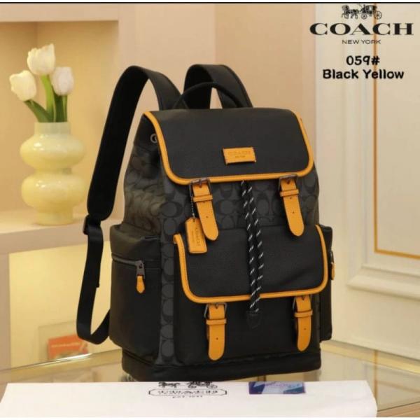 Coach Unisex Rivington Backpack Apricot Black Yellow Sprint Leather With Dust Bag 059 Black Yellow