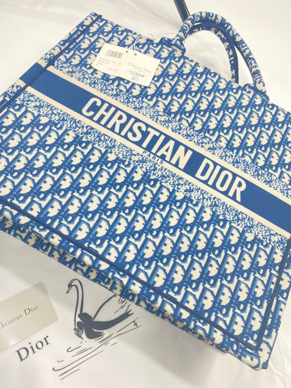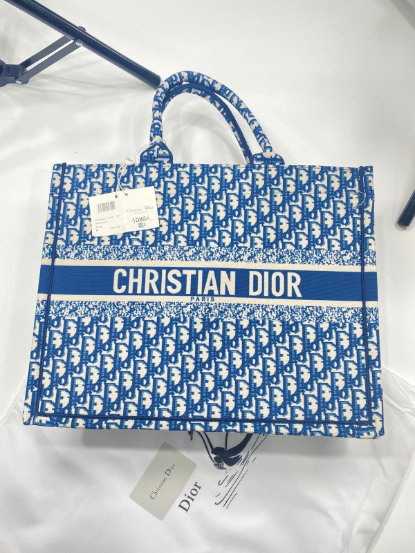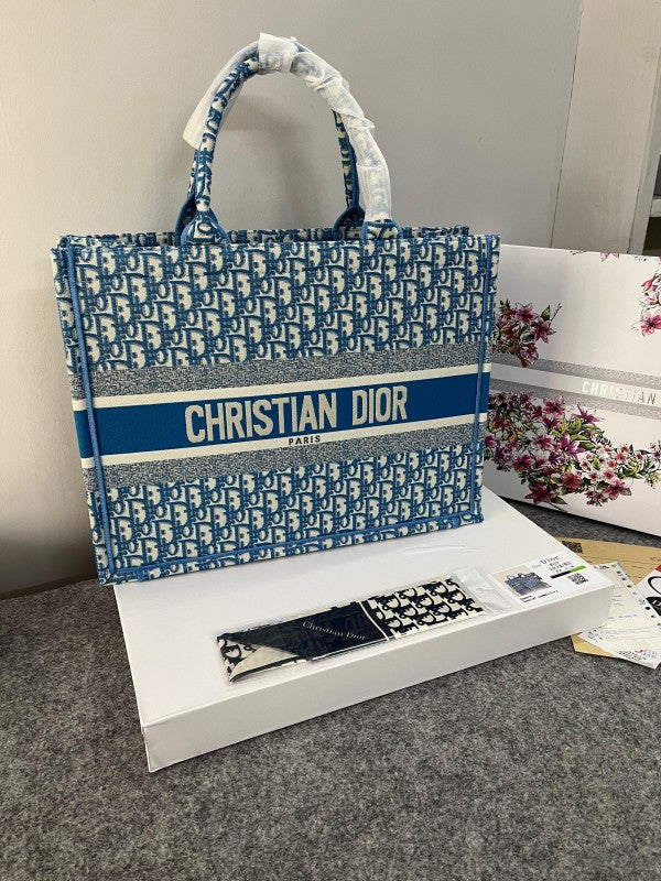 Dior Book Tote Oblique Embroidery With OG Box & Dust Bag & Scarf ( Blue - M929 41Cm)