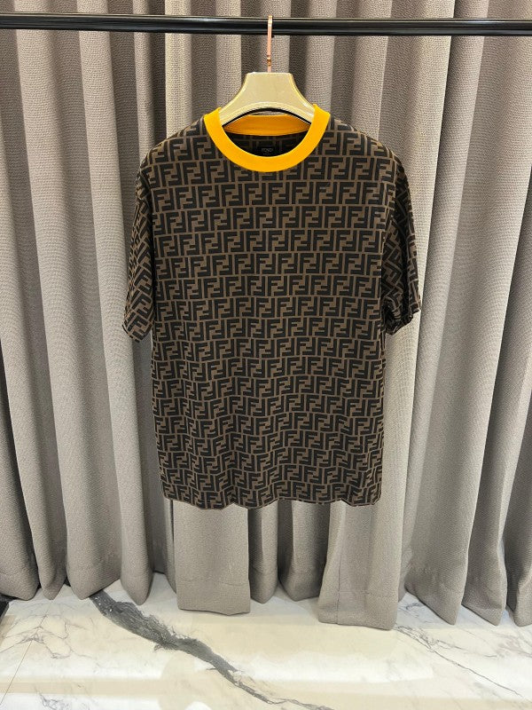 Fendi Full Monogram Print Round Neck T-shirt Brown