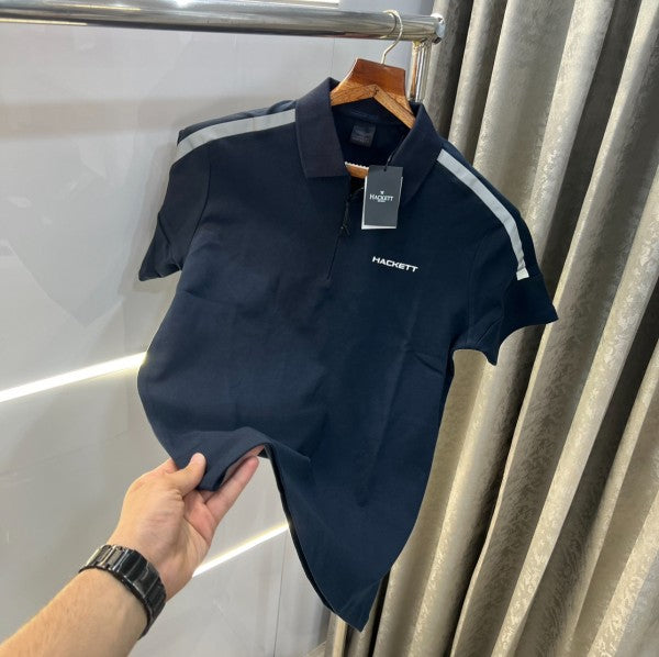 Hacket Aston Martin Navy Blue Logo Print Premium Polo T-Shirt