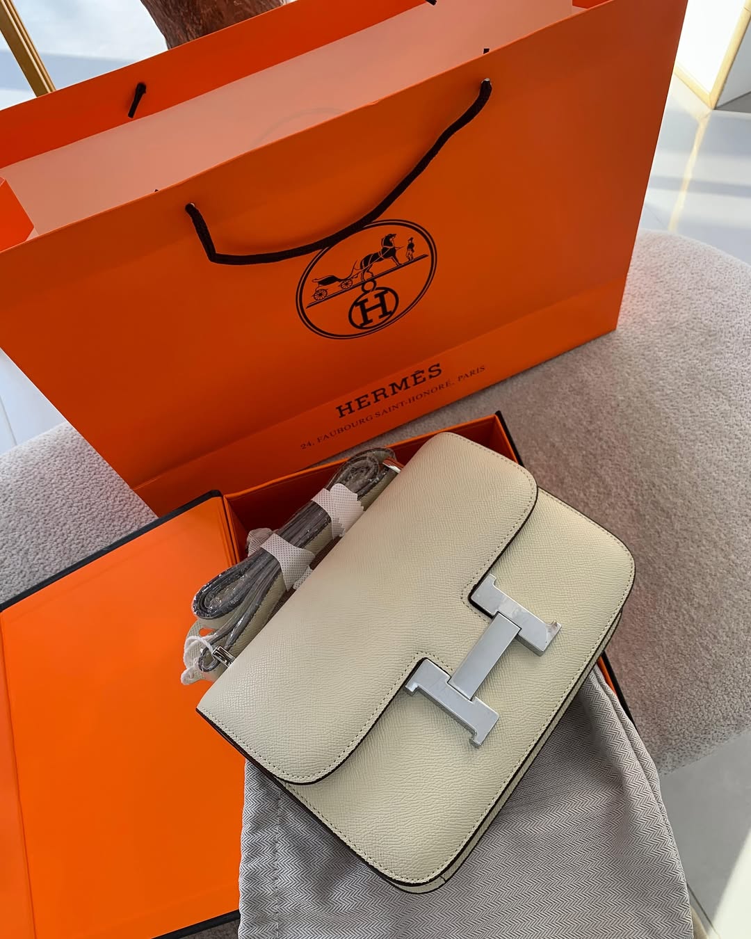 Hermes Constance Slim Epsom Vert With OG Box & Dust Bag KG-19 Apricot
