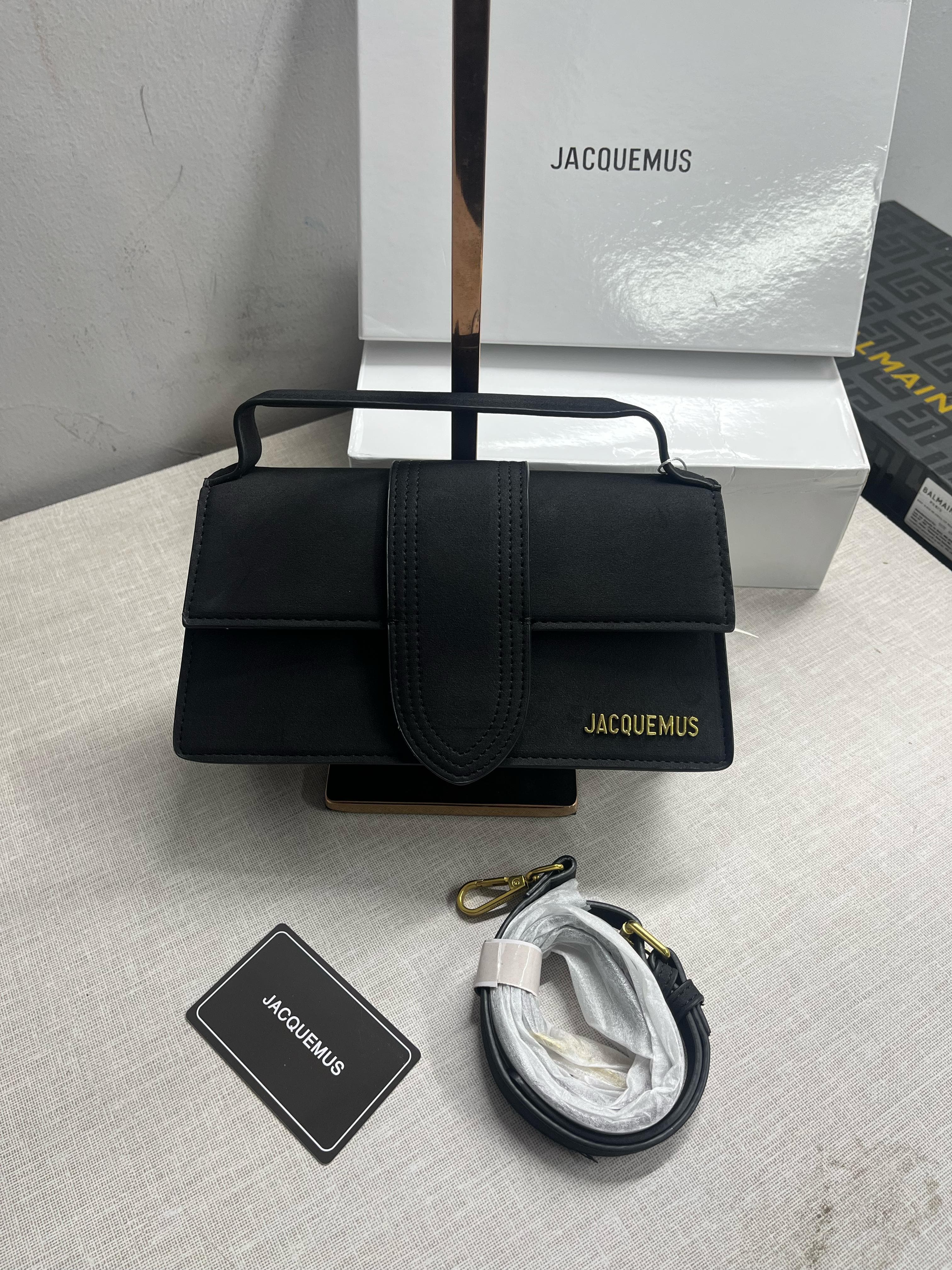 Jacquemus Suede LE Bambino Long Apricot With Sling Strap OG Box & Dust Bag (6828-Black)
