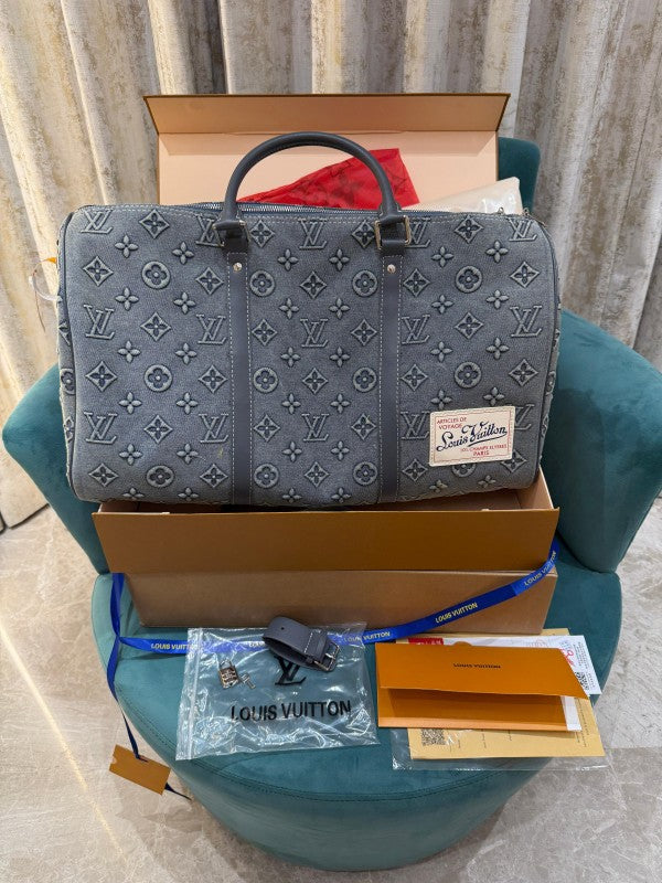 Louis Vuitton Lv Monogram Washed Denim High Quality Duffle Bag With Double Box Packing