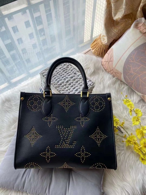 LV M46733 On The Go Premium Monogram Empreinte Leather Tote Bag With OG Magnetic Box & Dust Bag (Black - 649)