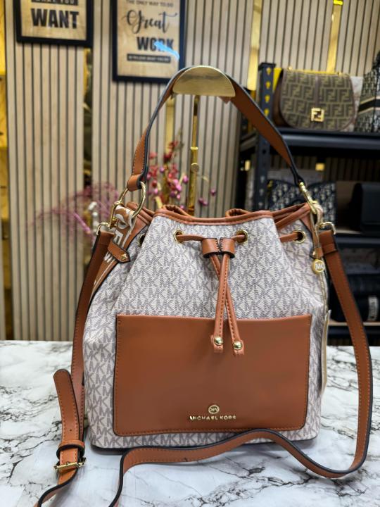 Michael Kors Maeve Medium Bucket Bag With Dust Bag Beige Brown 100829