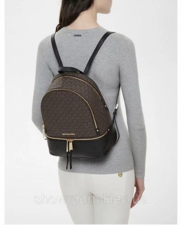 Michael Kors Rhea Medium Logo and Pebbled Leather Backpack With Dust Bag (Coffee Black - 6448)