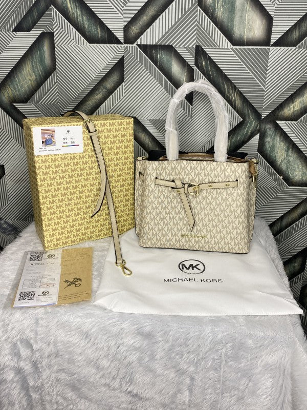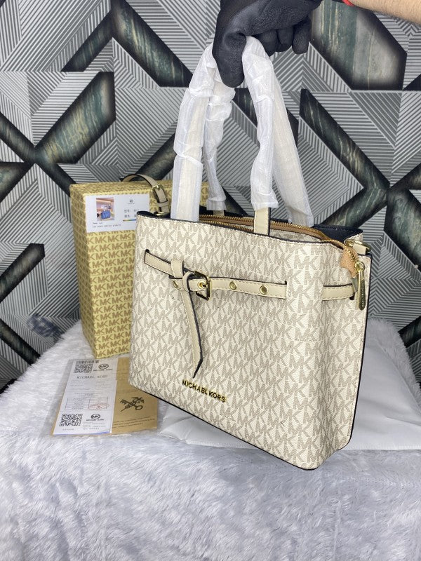 Michael Kors Signature Emilia White Shoulder Bag With Premium Box Packaging & Accessories (8611)