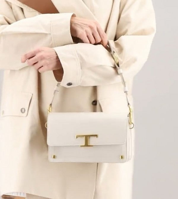 TODS T Timeless Shoulder Bag With OG Box & Dust Bag (White 661)