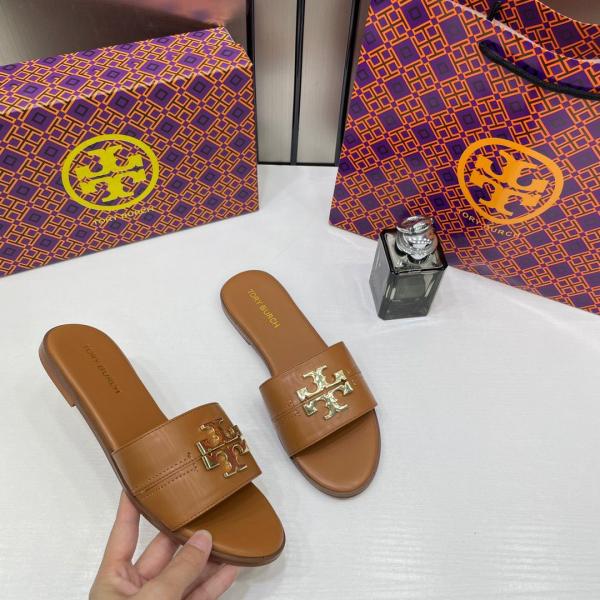 Tory Burch Eleanor Slide Flat Brown With OG Box 1892 Brown