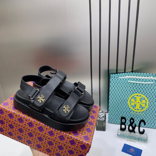 Tory Burch Kira leather Platform Sandals For Her With OG Box & Carry Bag 2020 TS Black