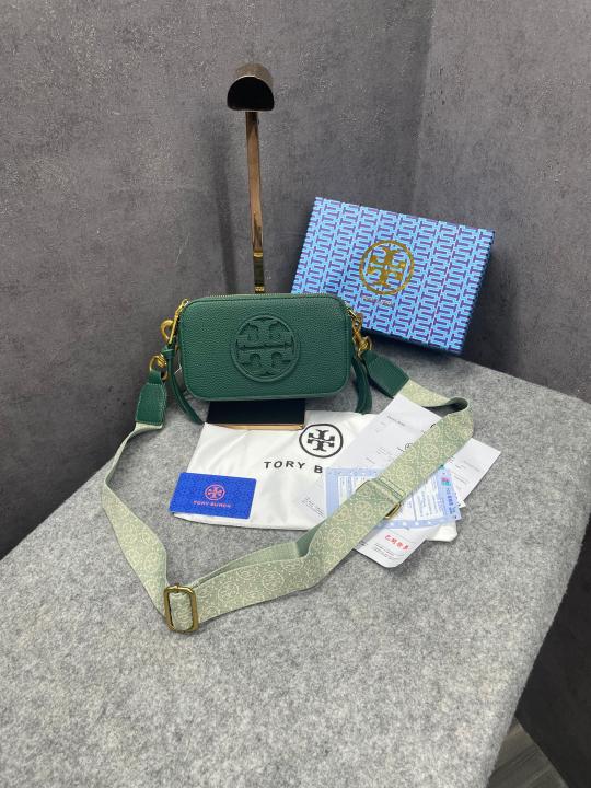 Tory Burch Miller Crossbody Camera Bag Green With OG Box & Dust Bag 3300 Green