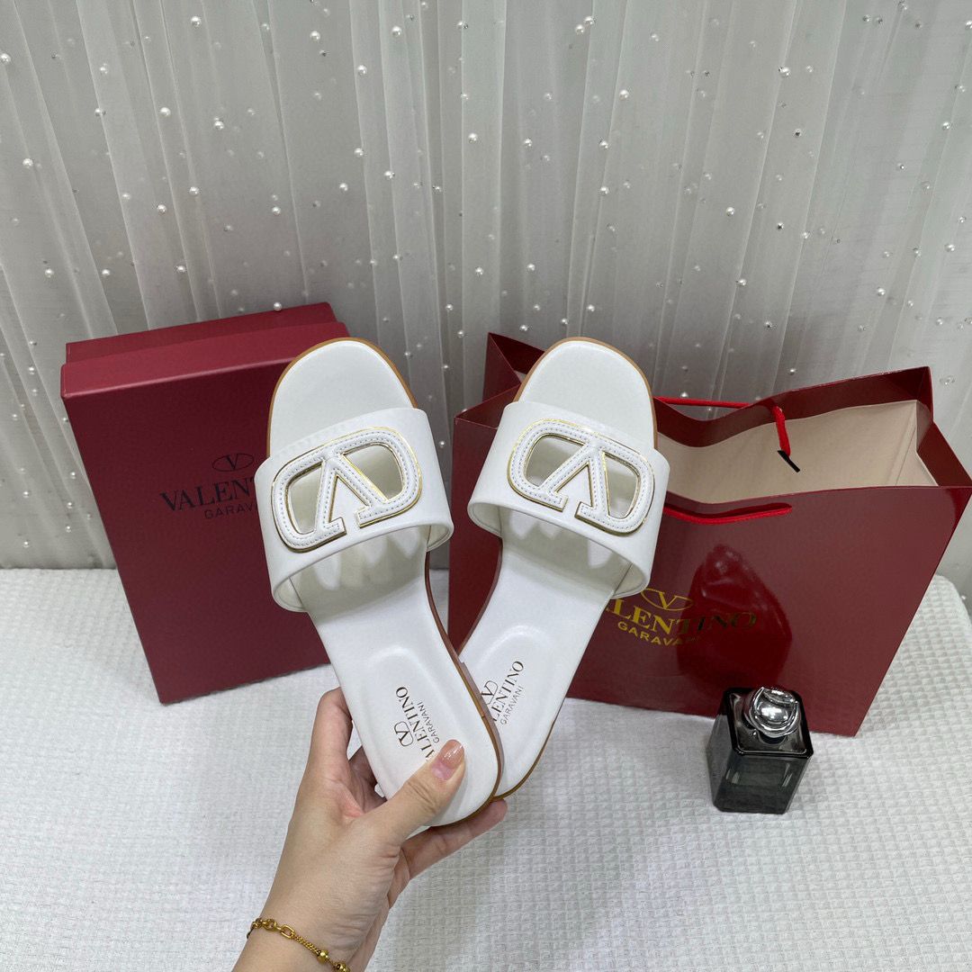 WMN Valentino Premium V-Logo Signature Slides White