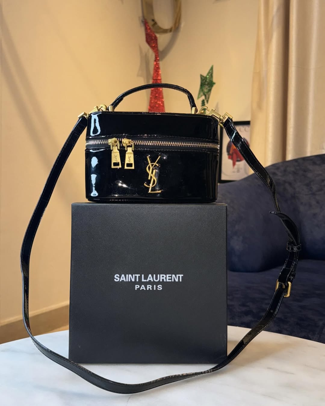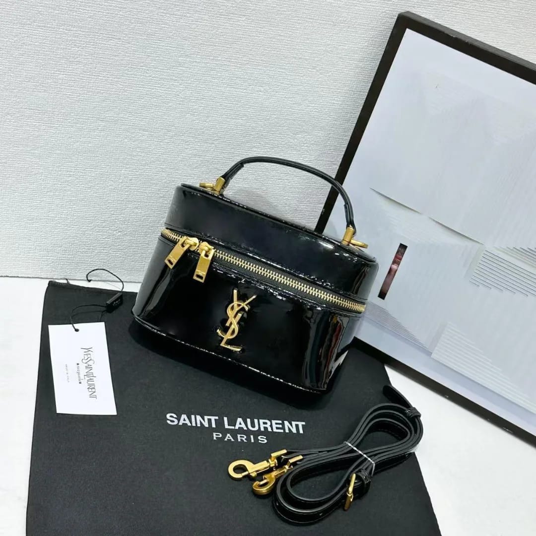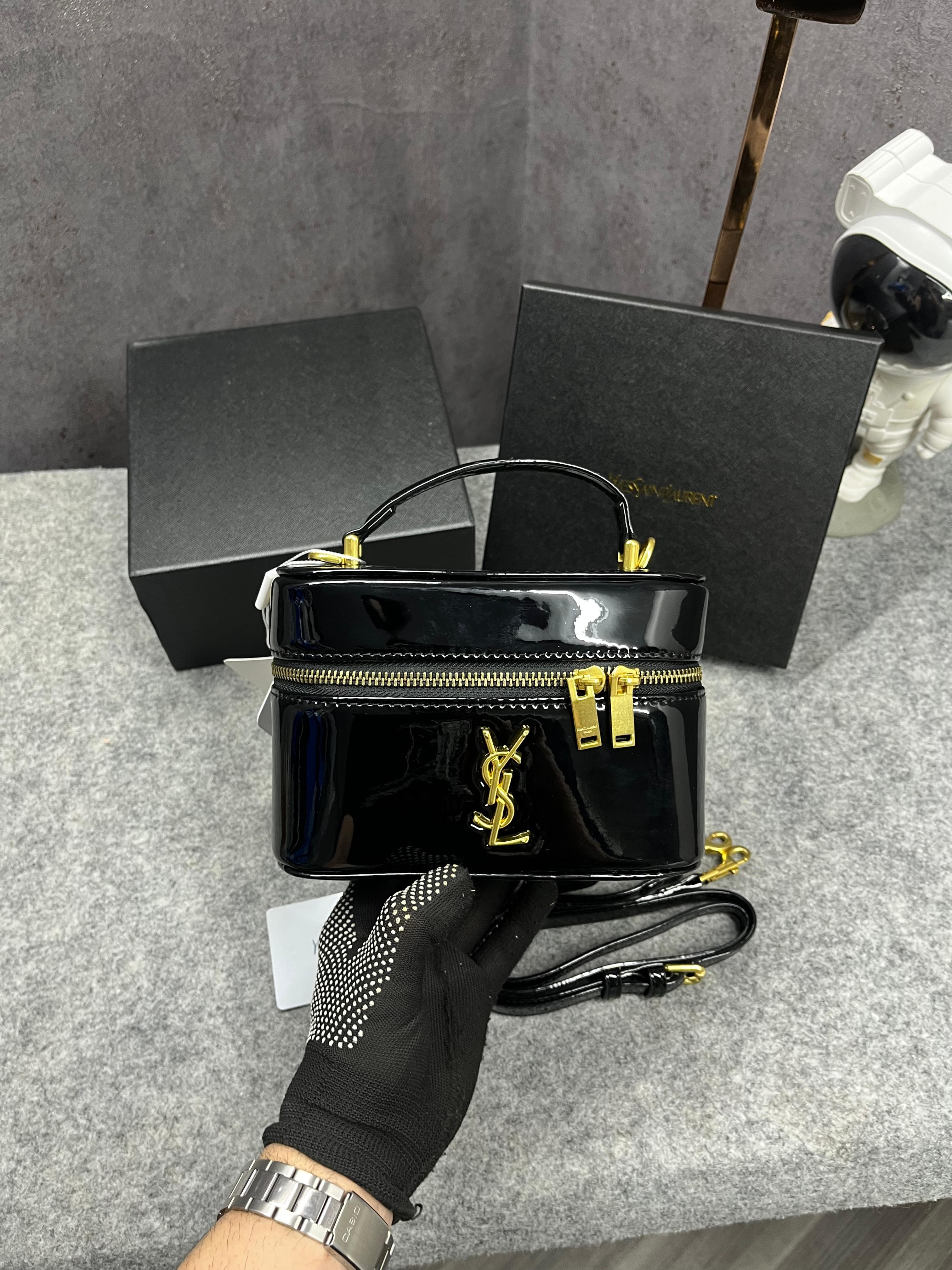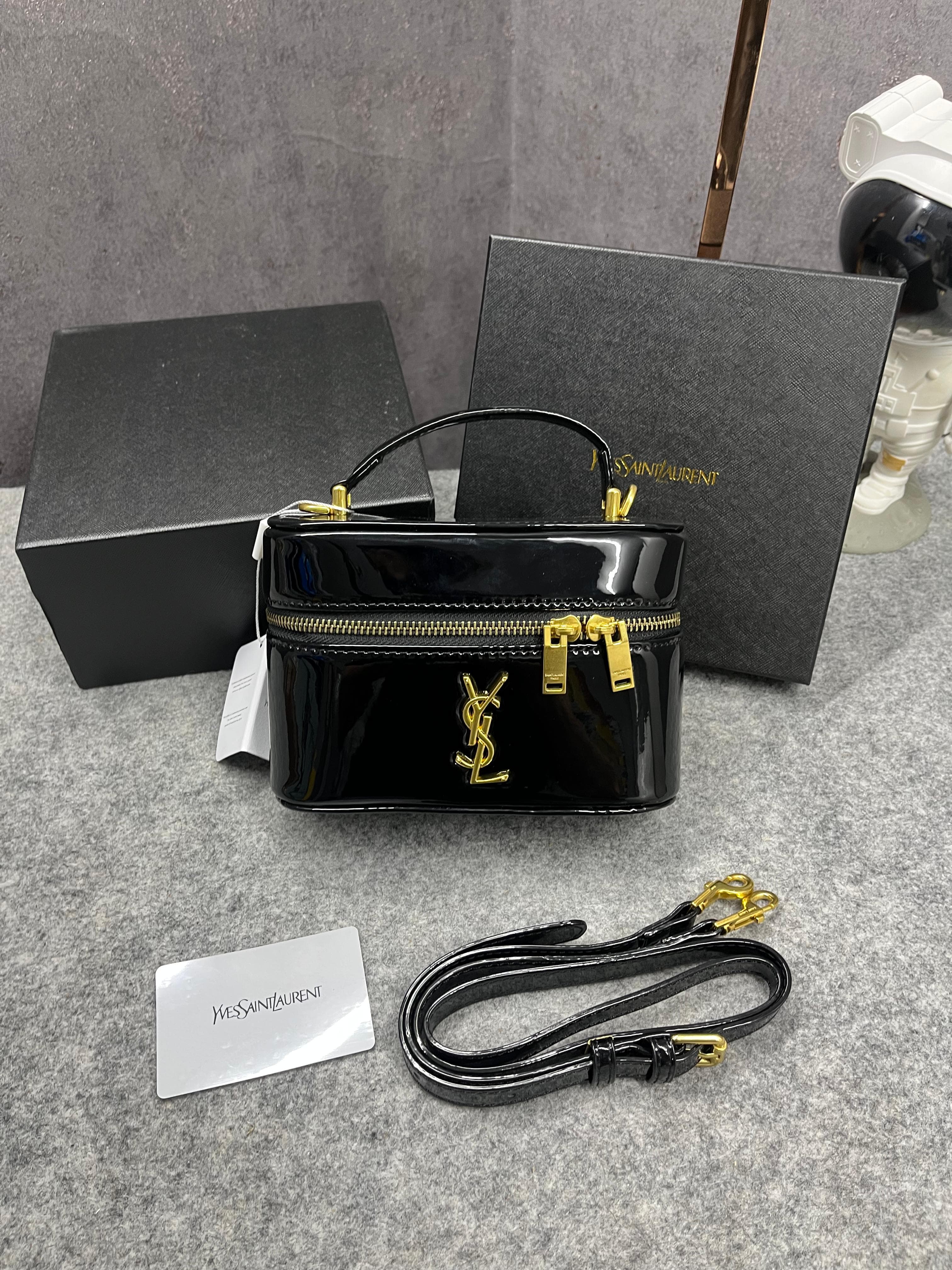 Ysl Saint Laurent Black Gaby Patent Leather Vanity Bag With OG Box & Dust Bag 77106 Mirror Black
