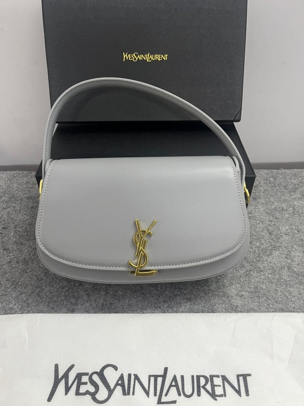 YSL Saint Laurent Voltaire Leather Shoulder Bag With OG Box & Dust Bag (83-1 Grey)