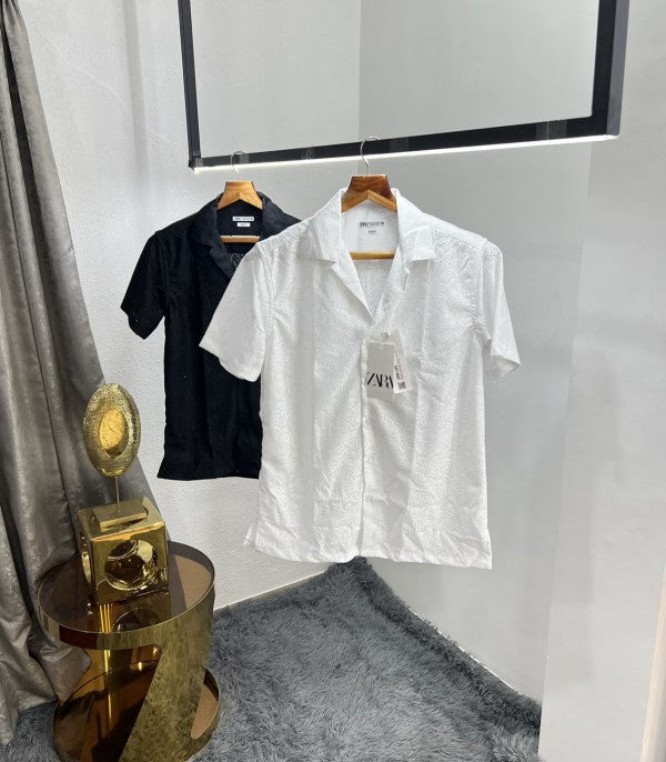 Zara Black Leaf Printed Premium Crochet Shirt
