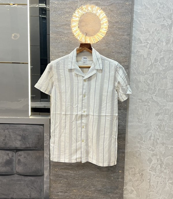 Zara White Stripes Premium Half Shirt